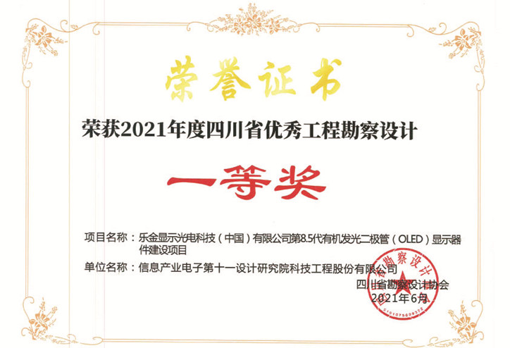 樂金第8.5代有機(jī)發(fā)光二極管四川省一等獎